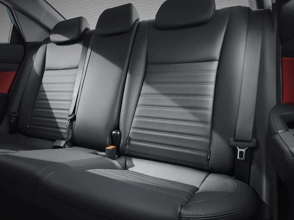 | Комбинация кожа / ткань в отделке сидений с красной прострочкой |